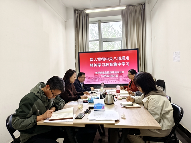 焦阳副主任带领大家集中学习了学校《明陞m88官方网站地址印发河南牧业经济学院本科教育教学审核评估工作方案的通知》、《明陞m88官方网站地址进一步厉行节约坚持过紧日子的通知》、《河南牧业经济学院校长奖励基金管理办法》等专题学习内容。