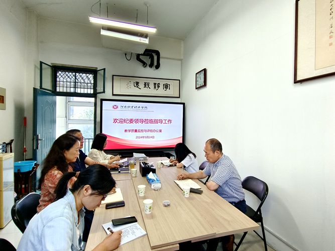 杨成副书记在调研中指出提升教师课程思政建设的意识和能力,发挥课程思政育人功能,不断推进明陞m88官方网站地址课程思政高质量建设,所有任课教师要把思政元素融入课堂教学,培养学生终身受益的综合素养。党的二十大报告深刻指出,“育人的根本在于立德”。课程思政重在把握立德树人的重要使命,旨在提升铸魂育人的思想观念。杨书记查阅督导委员听课记录本和明陞m88官方网站地址教学督导评价平台相关实时数据,重点查阅督导委员反馈任课教师课程思政融入课堂教学的落实情况,充分肯定了教学质量监控与评估办所做的工作。杨书记最后指出课程思政是学校落实立德树人根本任务的关键,是用党的创新理论培根铸魂、启智润心的主渠道,要多措并举创新推进课程思政建设的督导,任课教师要把廉洁教育和思政教育都融入课堂教学。